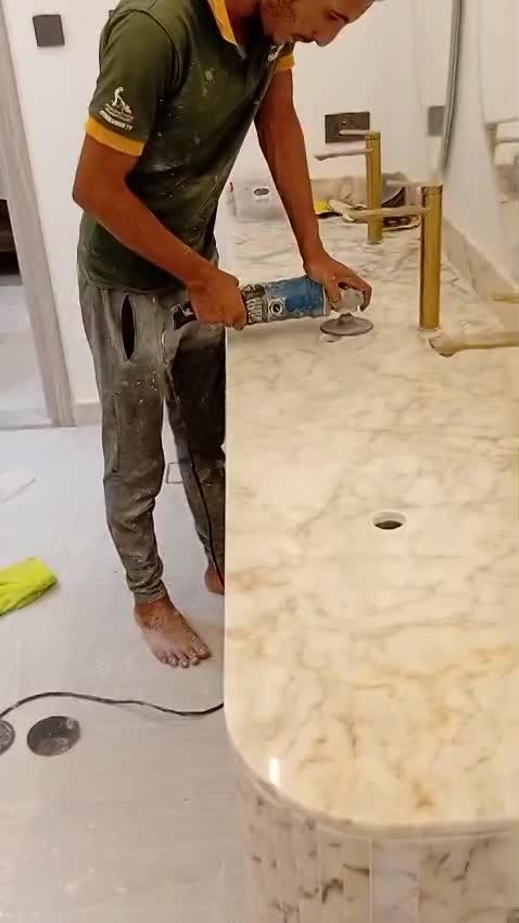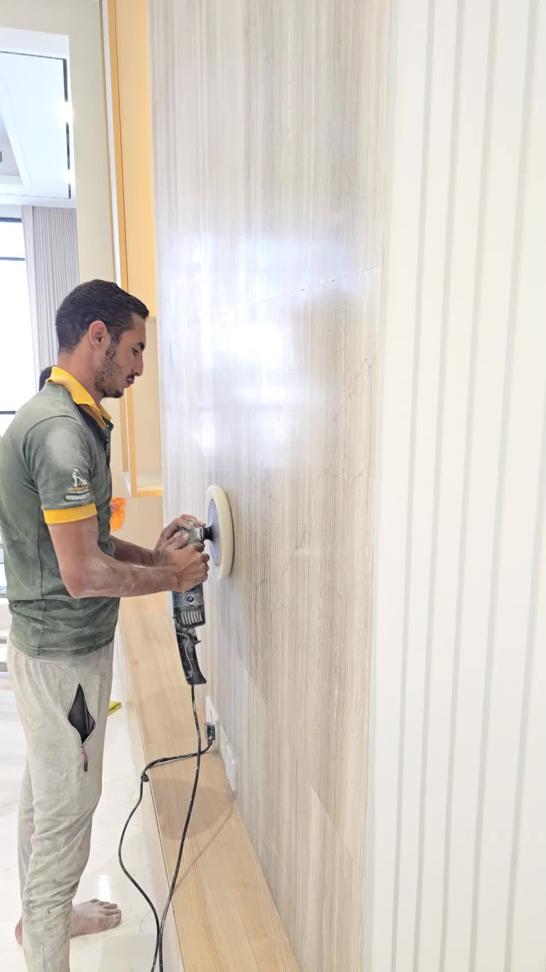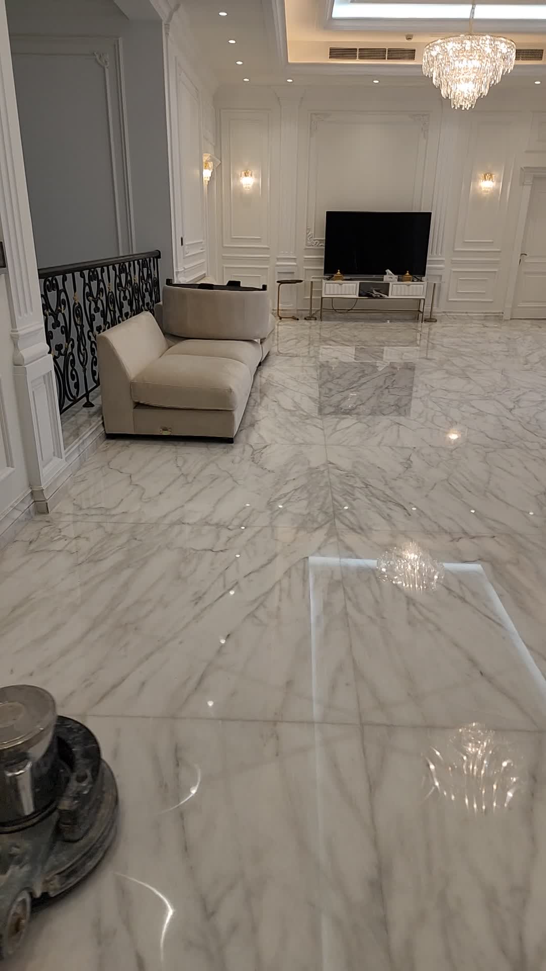 نقوم بجلي سطح الرخام لإزالة الطبقة التالفة أو الباهتة باستخدام آلات متقدمة، مما يُعيد للرخام نعومته ولمعانه الأصلي ويجهّزه للتلميع النهائي
